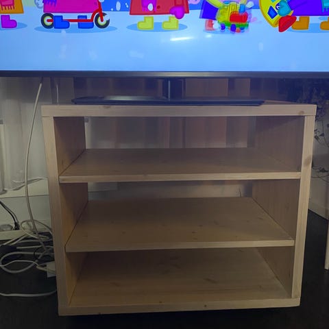 Myydään valkoinen hyllykkö, joka voi toimia vaikka tv-tasona tai sivupöytänä. Ehjä ja tukeva, kaikki välihyllyt siirreltävissä ja irrotettavissa, menee tarvittaessa kokonaan kasaan. Vuosikymmeniä sitten Martelalta ostettu.