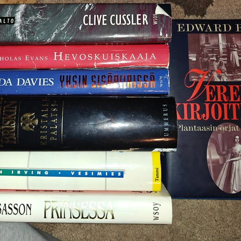 Kaikki kirjat hinta yhteensä 10 euroa tai 4 euroa kpl
