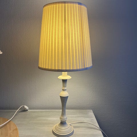 Kaunis pöytävalaisin sinisellä varjostimella. Lampun saa mukaan.