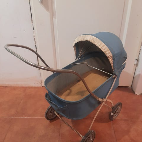 Puiset nuken vaunut. Etukulmassa pieni lohkeama, josta maali lähtenyt.