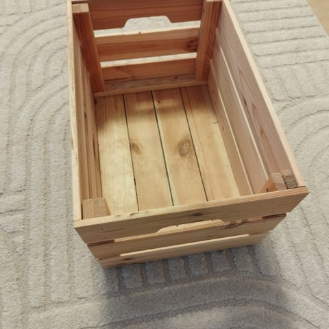 Puinen säilytyslaatikko, suunniteltu 12” levyille mutta käy toki mihin vaan. Levyt eivät kaupan. Hyvässä kunnossa, maalattu alunperinkin ”kuluneen” näköiseksi. L37 K20 S40