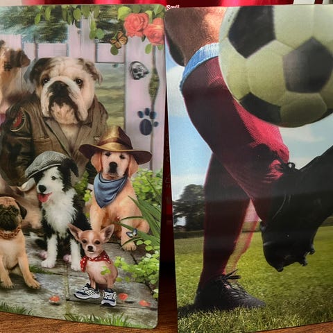 Parissa kortissa on joku muu ruttukuono kuin mopsi ja jokunen tuplakin on, mutta suurelta osin ovat erilaisia. Yhdelle kortille on myös kirjekuori. Kortit ovat käyttämättömiä.