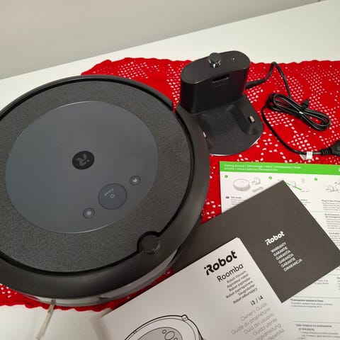 iRobot Roomba -robotti 675 imuri + varaosat ja tarvikkeet, sisältäen ohjekirjan, lataustelakan, suodattimia, harjasarjan ja pölysäiliön.