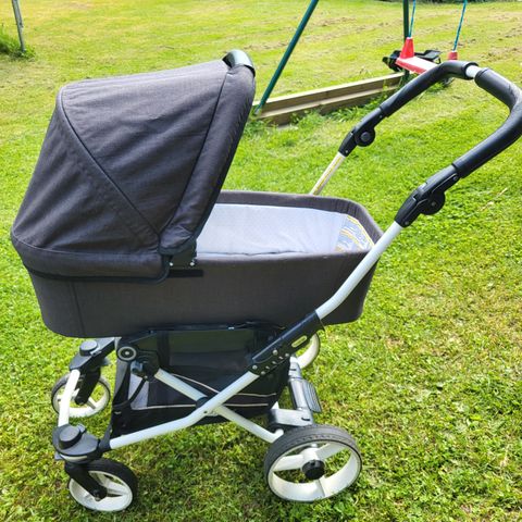 Annetaan mummola käytössä olleet lastenrattaat, joihin saa koppaosan vauvaa varten. Runko ei mene kasaan, mutta täysin toimivat muuten.