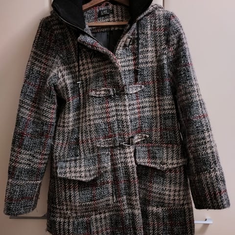 Naisten Lascana talvitakki, beige, koko 38. Irrotettava huppu vetoketjulla. Selän pituus 70cm. Pidetty vain kerran, kuin uusi.