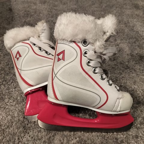 Lasten hokkarit, koko 26. Sisäpohja noin 15,5cm. Viime talvena otettu käyttöön, noin 5 kertaa olleet jäällä, terät kunnossa.