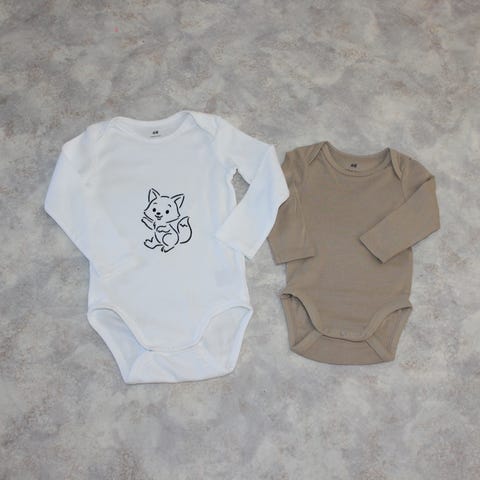 Uusi H&M body, johon käsinpainettu kettu kuva.