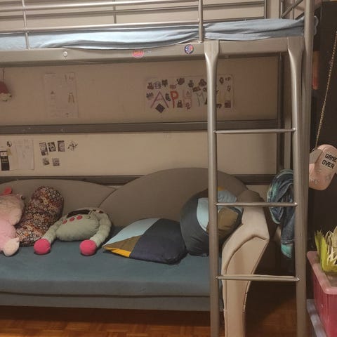 Tummanharmaa metallinen parvisänky ja siihen sopiva lähes käyttämätön peruspatja. Hinta sama patjalla tai ilman.