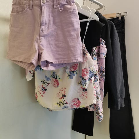 Vaatepaketti tytöille koko 134/140, 8 osaa (paitoja, shortseja, housut, bikinit)