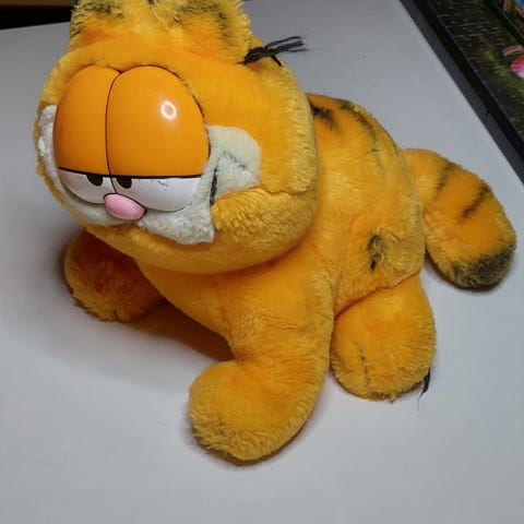 Vanha kissa Karvinen (Garfield) keltainen pyyhe 90-luvulta, tarkemmin ottaen vuodelta 1997. Pyyhkeessä on "nyppylöitymistä", mutta muuten ikäisekseen hyväkuntoinen :) Koko noin 128cm x 69cm.