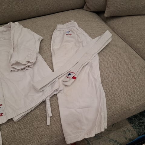 Kamppailulajit lasten vaate, koko 130, valkoinen väri. Soveltuu kamppailulajeihin ja harjoitteluun.