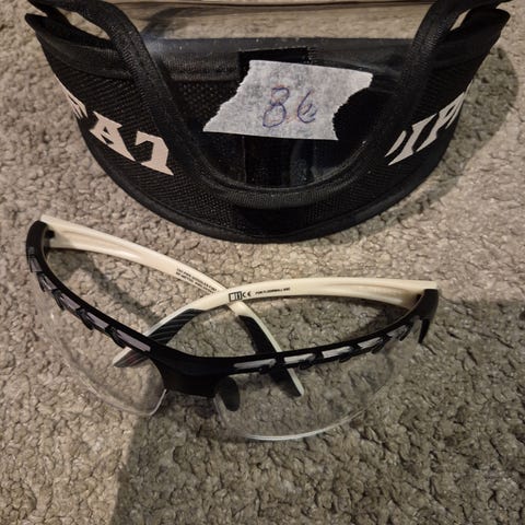 Yhdellä pojalla vähäisessä käytössä olleet suojalasit.