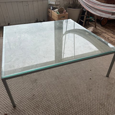 Ylimääräiseksi jäänyt lasisohvapöytä. Siistissä kunnossa, lasi ehjä.