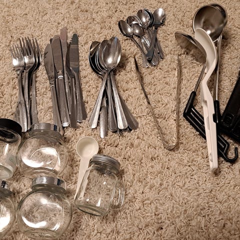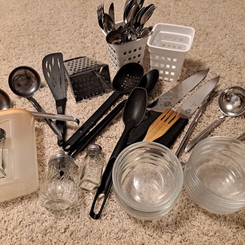 Hyväkuntoista välinettä, aterimia, kuppeja, kakkupapereita ym ym. Joukossa joku käyttämätön.