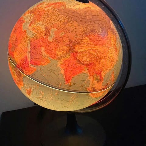 Myydään 1960-luvun vintage karttapallo-valaisin. Puuta ja metallia, ei muovia.