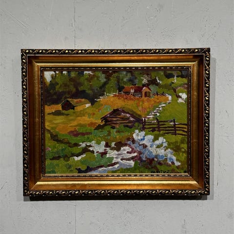 Öljyvärimaalaus merimaisemasta, jossa näkyy rauhallinen meri ja taivaanranta. Teos on kehystetty puukehyksellä, joka korostaa maalauksen sävyjä ja tuo esiin sen yksityiskohdat. Ei signeerausta.