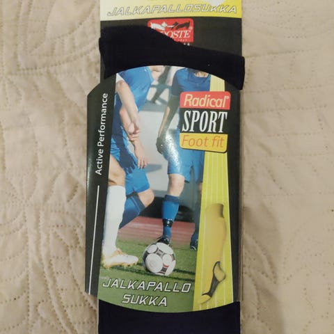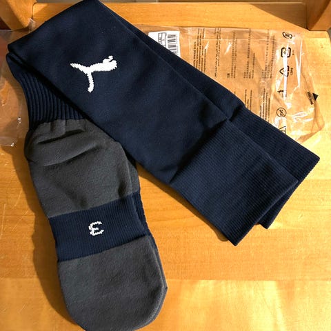 Uudet, paketissa olevat Hummelin jalkapallosukat.
