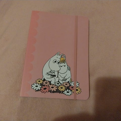 Myyntiin tarpeettomana käyttämätön ja uusi kovakantinen vaaleanpunainen Muumi-kalenterikirja 2026.