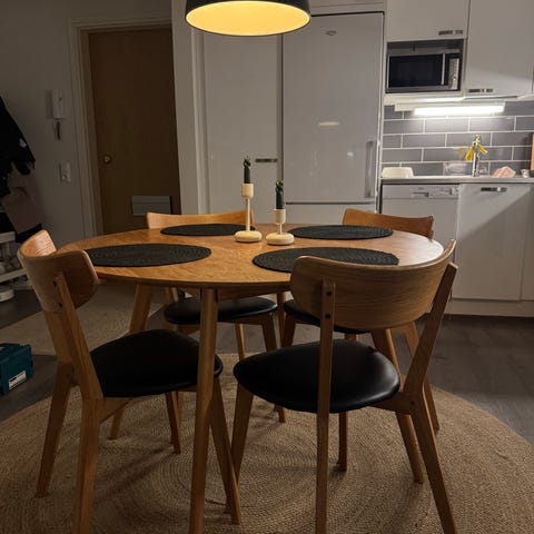 Myydään Rowico Yumi ruokapöytä, halkaisija 115cm. Pieni jälki reunassa (kuva 3).