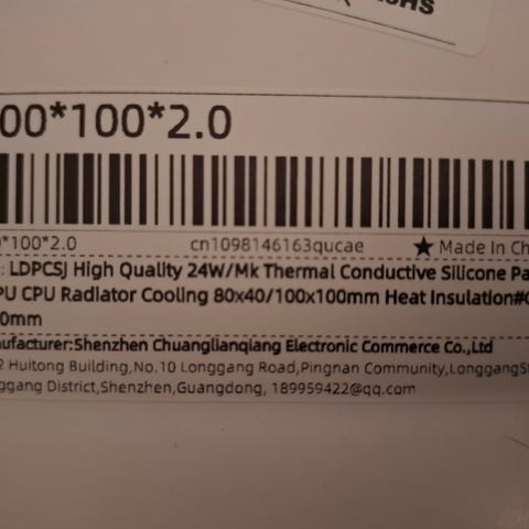 Ylimääräiseksi jäänyt täysin käyttämätön thermal pad matto. Katso kuvasta tarkemmat tiedot.