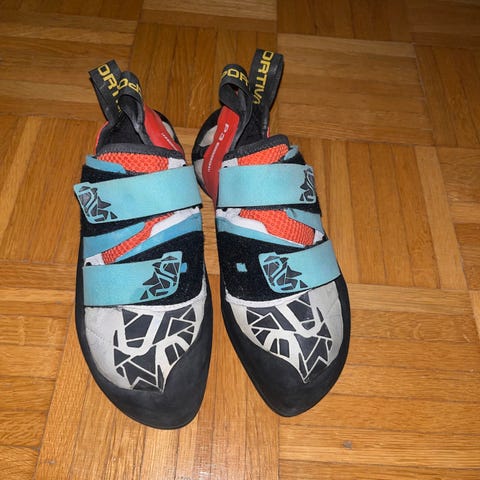 Vähälle käytölle jääneet ehjät ja siistissä kunnossa olevat laadukkaat kiipeilykengät. Kiivetty muutama kerta ulkona ja sisällä ohuita sukkia käyttäen. Kengät säilytetty Boot Bananas -hajunpoistajilla varustettuna, joten eivät haise yhtään. Hajunpoistajat kuuluvat kauppaan.