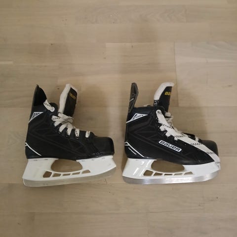 Bauer lasten jääkiekkoluistin. Pohjallisen mitta 21 cm. Toisesta kantapäästä koira purrut, muutennihan käyttökelpoiset.