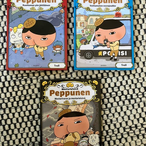 Myydään uusi Mestarietsivä Peppunen -kirja.