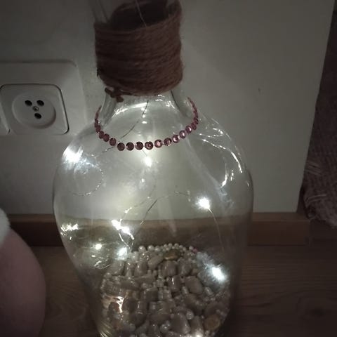Myös värillisiä pulloja myynnissä ja niihin erilaisia korkkeja.