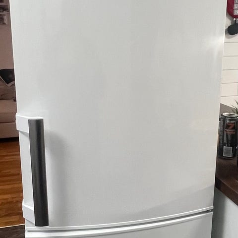 Se on hyvässä kunnossa; ensimmäisessä kerroksessa on jääkaappi ja alakerrassa pakastin.