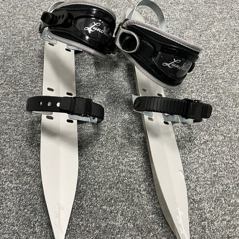 -Skyllemarks-luistimet, terän pituus 48 cm, sopii mm. vaelluskengille koot 39-45 (Nämä luistimet ovat sitä mallia missä ei ole yhtään pakkasessa hajoavia muoviosia).