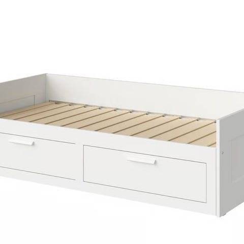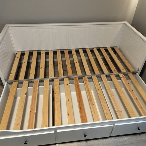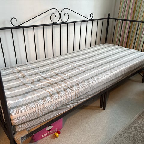 Hyväkuntoinen sohvasänky uuden tieltä pois. Sängyssä ei ole mitään naarmuja tai jälkiä. Sängyssä ei ole ollut ”seinät” lainkaan kiinni, mutta löytyvät kuvan mukaisesti. Patjat eivät kuulu hintaan.