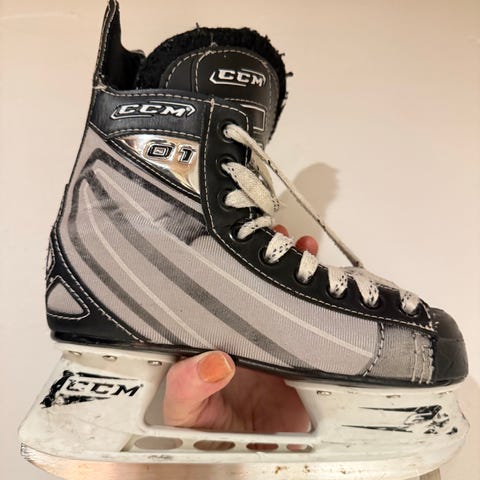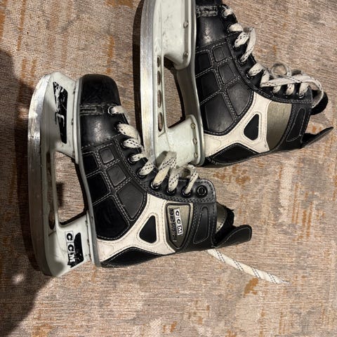 CCM Jääkiekko luistimet, lasten koko 32. Mustavalkoinen väri ja perinteinen nauhakiinnitys. Sopivat jääkiekon harrastamiseen.