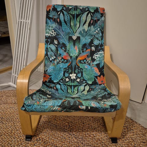 Ikean poän lasten nojatuoli, hyvässä kunnossa ollut vähällä käytöllä. Mukana vaalea päällinen sekä mukaan saa toisen dinosaurus kuosilla olevan vaihtopäällisen. Molemmat on pesty. Koiratalous.
