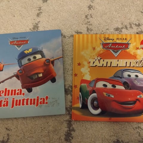 2 Disney Autot -kirjaa. Salamannopeat Autot -kirjassa magic movie-kalvo ei toimi tai sitten vaan en ymmärrä sen toimintaperiaatetta. Muuten hyväkuntoinen, 19 sivua. Rohkeat paloautot -kirjassa alakulma luultavasti käynyt pentukoiran suussa eikä kannessa mainuttaja tarroja ole mukana, muuten ok kunnossa, 24 sivua. Virheet näkyvät kuvissa.