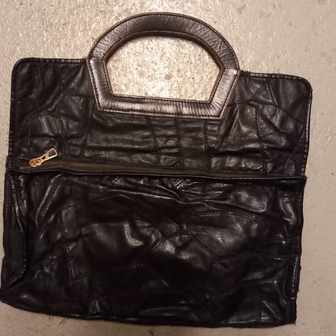 Tummansininen nahkalaukku pitkällä hihnalla. Käytön mukana tulleita jälkiä löytyy pinnasta. Lukitusmekanismi on jämäkkä ja sulkeutuu hyvin. Kaksi vetoketkutaskua, joten sopii vaikka rahastajan laukuksi / kukkaroksi.