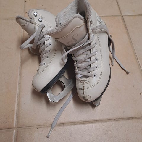 Myyntiin yhdellä lapsella käytössä ollut ja meille uutena ostetut luistimet koko 31.Viime talvena käytössä olleet. Käyttökertoja alle 10,joten todella hyväkuntoiset. Toisessa luistimessa pieni painauma, siitä kuva. Muuten todella hyvässä kunnossa.