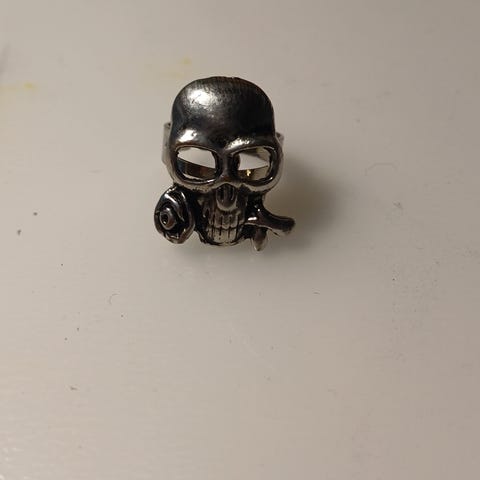 Uusi pääkallosormus valmistettu teräksestä.