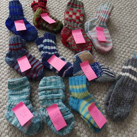 Meille liian pienenä tulleet kettu villasukat ja tumput. Noin 2-3w kokoa lapsesta riippuen. 5 e tai 10e yhteensä