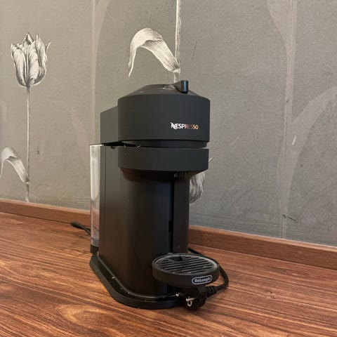Nespresso Vertuo kahvikone musta väri. Kahvikone on suunniteltu käytettäväksi Nespresso Vertuo -kapseleiden kanssa. Sisältää kahvikoneen ja käyttöohjeen.