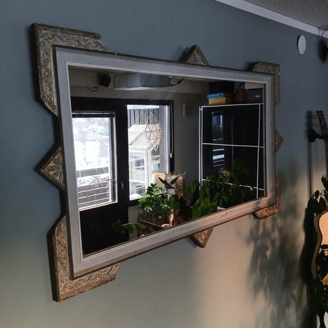 Antiikki peili. Koristeellinen kehys. Kulumaa löytyy kehyksestä mutta peili osuus ehjä. !!!!!TARJOA HINTAA!!!!!
