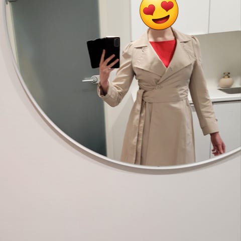 Käyttämätön Your face todella kaunis tikkitakki / trenssitakki. Kevyt toppaus. Sävy on hyvin tummansininen, lähes musta. Lappu poistettu mutta takki jäänyt käyttämättä.