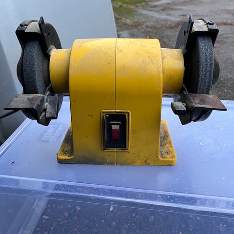 Kuvan mukainen hionta/teroitus vehje. Kokeiltu että pyörii ja puukon sai teräväksi.