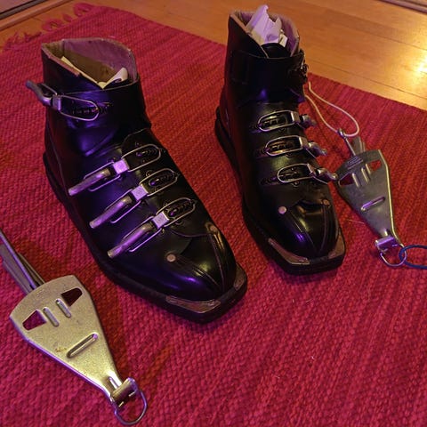 San Marco merkkiset laskettelumonot 70-luvulta. Toisessa monossa läppä rikki. Somisteeksi tms. Koko noin 42.