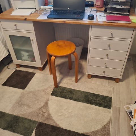 Täysin toimiva tietokonepöytä. Kulumajälkiä pinnassa, mutta muuten hyvä.