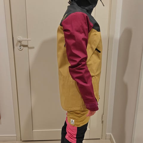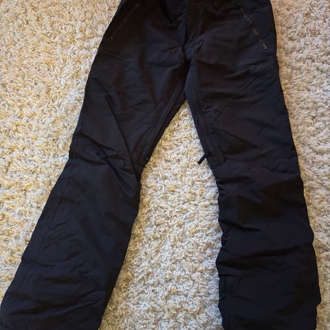 Lahkeessa lumipussit. Henkselit ovat irroitettavat. Toiseessa lahkeessa pientä käytössä huomaamatonta kulumaa, josta kuvat.