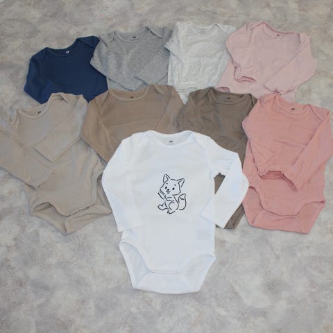 Uusi H&M body, käsinpainettu kissa kasvo kuva ja minusta tulee isosisko teksti.