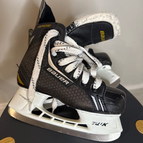Myynnissä Bauerin luistimet, kokoa 33,5. Kärkiin ja muoviosiin tullut jääkiekon pelaamisesta naarmuja, mutta luistimet ovat muuten hyvässä kunnossa. Terät tuntuvat ihan selkeästi teräviltä, eli ei tarvitse olla heti teroittamassa.
