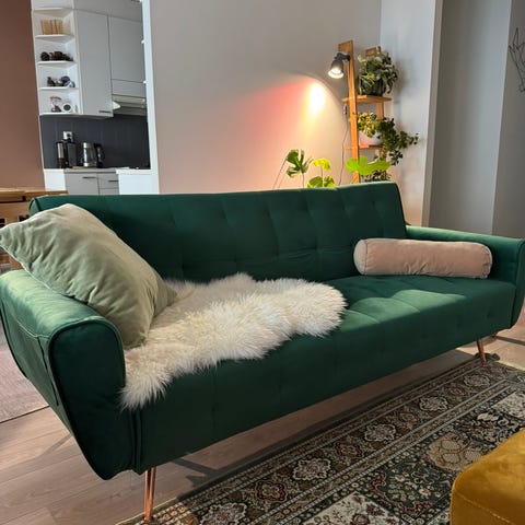 Myydään siisti kahdenistuttava vuodesohva. Väri: vaalean harmaa