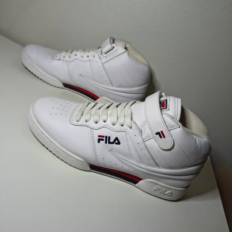 Fila merkkikengät kohtuukuntoiset nauhat kuluneet pohjalliset joutuu hommaamaan