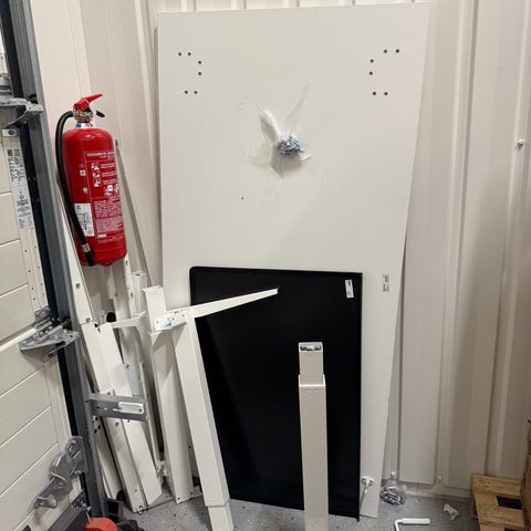Kammella säädettävä hyväkuntoinen työpöytä. Pöydän pinnassa on pari huomaamatonta pientä kolhua, joita ei edes näe ellei tarkkaan katso (kolhuista on kuva mutta siitäkään ei taida erottaa kunnolla).